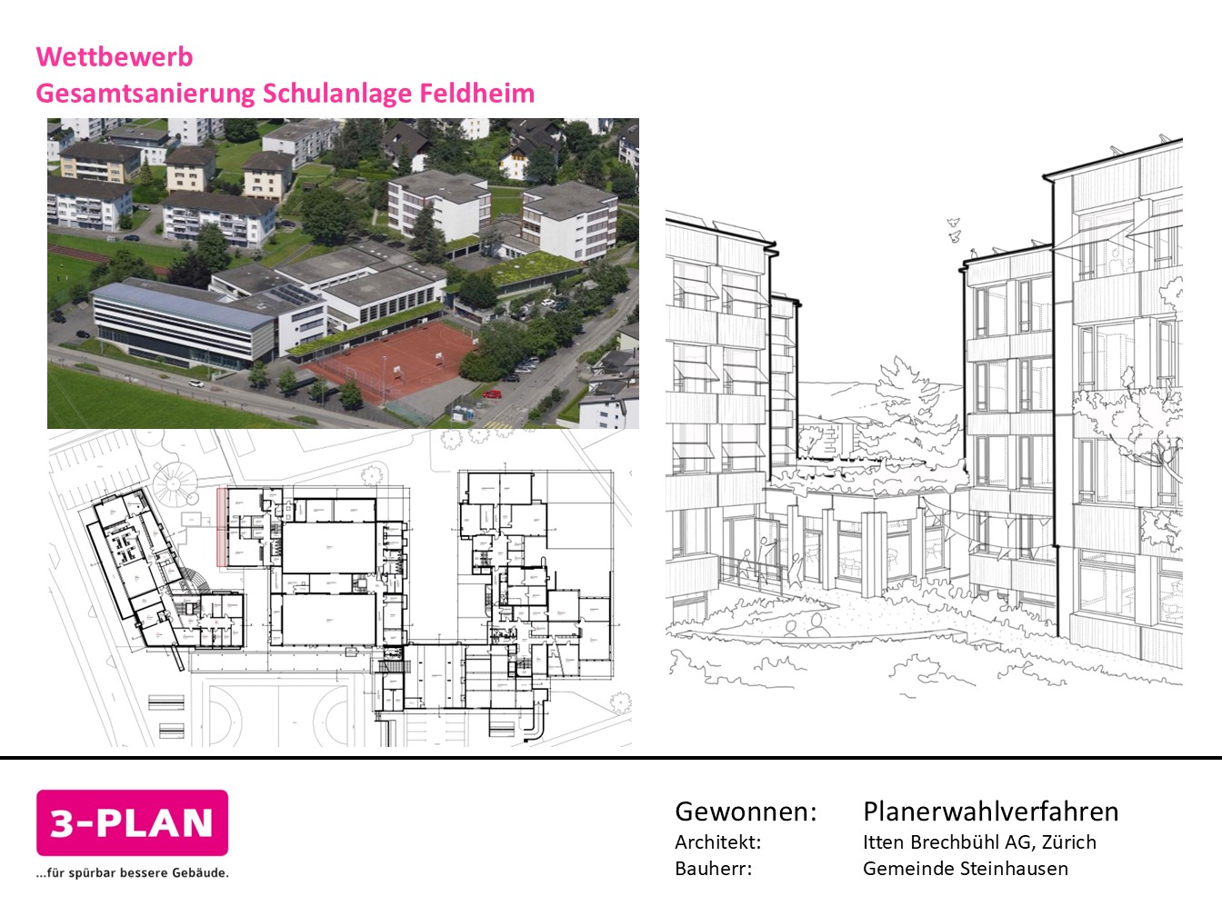 Wir freuen uns sehr, dass wir zusammen mit Itten+Brechühl AG, Zürich das Planerwahlverfahren für die Gesamtsanierung Schulanlage Feldheim in Steinhausen gewonnen haben.